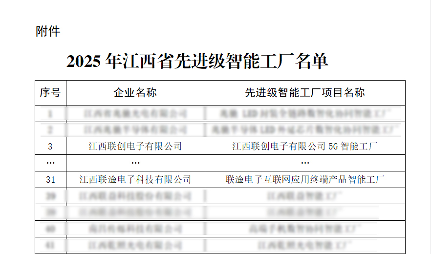 近日,江西省工业和信息化厅正式公布2025年江西省“先进级智能工厂”名单,186家企业入选。其中江西好博在线(中国)唯一官方网站有限公司、江西联淦电子科技有限公司2家好博在线(中国)唯一官方网站系企业名列榜单。这标志着公司在智能制造领域的创新成果再次获得政府权威认可。