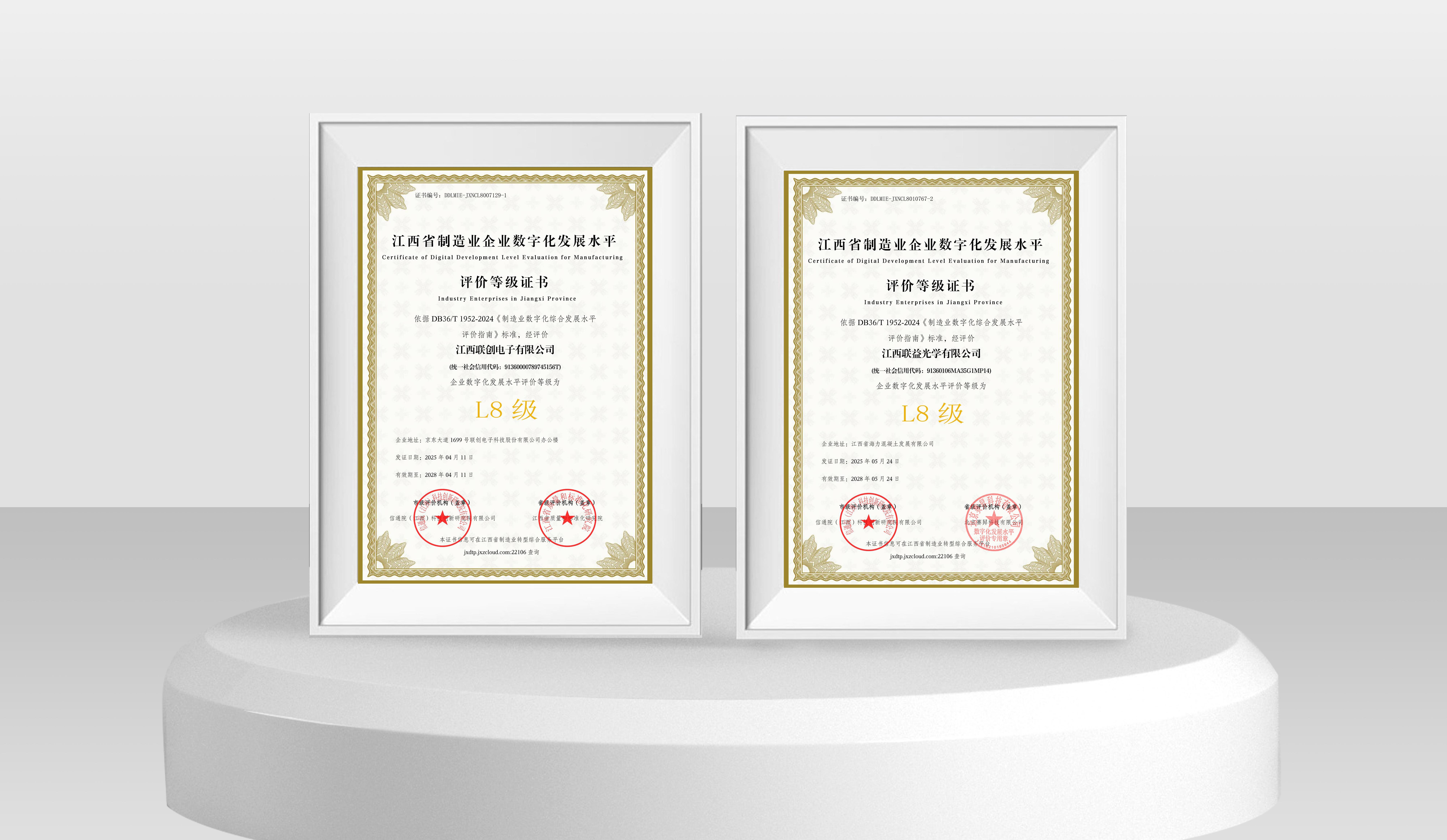 近日,好博在线(中国)唯一官方网站旗下江西好博在线(中国)唯一官方网站有限公司(以下简称江西联创)与江西联益光学有限公司(以下简称江西联益)凭借深度集成与创新应用能力,在江西省制造业企业数字化发展水平等级评价中双双达到L8级水平,标志着两家企业在数字化转型领域已跻身全省“集成提升阶段”最高水平,为全省制造业智能化升级树立新标杆。
